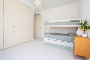 The lower level features a spacious lounge opening onto a large, sunny terrace, a sleek open-plan kitchen with utility area, and three bedrooms – including a master suite with en-suite bathroom and two guest rooms sharing a modern family bathroom. Upstairs, the property impresses with an extraordinarily large roof terrace, offering panoramic vistas of the golf course and the sea to the south side, and serene views over the communal pool to the north. Conveniently positioned within the complex, the penthouse allows for easy access to the pool area directly from the entrance side of the building. Additional features include air conditioning and an underground private parking space, a storage room. This exclusive gated community boasts beautifully landscaped gardens, a serene outdoor pool, indulgent sauna and steam facilities, a traditional hammam, and an elegant outdoor bar area designed for refined leisure and entertainment.