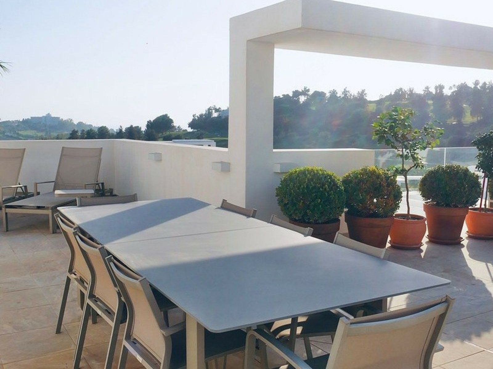 A rare opportunity to purchase a luxury penthouse in the sought-after La Alqueria area of Benahavís, offering unbeatable panoramic views of the Mediterranean Sea and surrounding golf courses. Located within a secure, boutique-style development, this elegant 3-bedroom, 2-bathroom property combines high-end finishes, spacious interiors, and resort-style amenities – perfect as a holiday home, full-time residence, or rental investment.