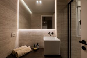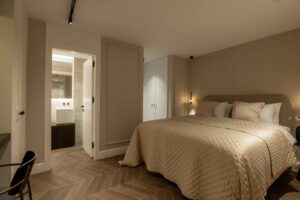The property offers three bedrooms and two stylish bathrooms, both fitted with underfloor heating for year-round comfort. The recent renovation has been completed to an exceptional standard, featuring a bespoke kitchen, custom carpentry throughout, and an advanced Air Zone climate system.