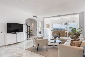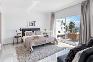 Discover a stunning apartment with the charm and feel of a townhouse in the exclusive Las Colinas de Marbella. This exceptional property, with a total of 241m² (152m² interior plus 89m² of terraces), combines space, natural light, and panoramic views, offering a lifestyle defined by elegance and comfort. From its terraces, you can enjoy sweeping vistas of the Mediterranean Sea, the famous La Concha mountain, and even the distant silhouette of Gibraltar.