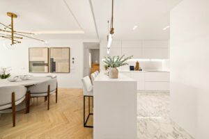 Welcome to this exquisitely renovated 3-bedroom duplex penthouse, a perfect blend of contemporary elegance and coastal-inspired comfort. Completely refurbished to the highest standards, this home showcases oak flooring throughout, including stunning oak wood herringbone details that elevate the ambience with timeless sophistication.