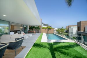 Tucked within an exclusive gated community in Artola Alta, this sophisticated south-facing duplex blends modern luxury with the tranquility of coastal living. Just a short walk from Marbella’s finest beaches, the home offers seamless access to nature and panoramic sea views from the community grounds.
