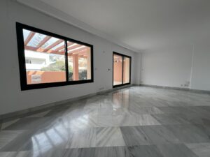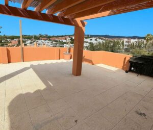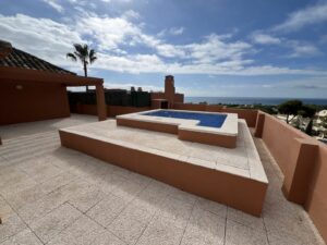 This spacious corner duplex penthouse has the most spectacular and panoramic sea and golf views from the large private terrace with its own private plunge pool. The lower level is where you will find the bright open lounge diner with generous terrace, large separate kitchen and utility room, one double bedroom and one bathroom. Upstairs has another double bedroom, family bathroom and the ample main bedroom with en-suite bathroom. From this level you also have access to the huge main terrace with all day sun and the ideal spot to enjoy those unbeatable views. The property is situated within walking distance of Cabopino with its wonderful beach as well as the marina with plenty of bars and restaurants to choose from. Owners also have the use of the gorgeous communal swimming pool and gardens.