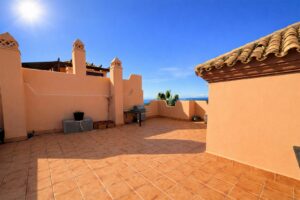Views & outdoor space are one of the most sought after features of an Andalusian property by foreign property buyers. This property has some of the most amazing views one can get and also with its large main terrace and then its upstairs solarium this property has a lot of outdoor terrace space that really allows one to enjoy the Spanish climate. The apartment itself has three bedrooms and two bathrooms plus a larger than average kitchen. The complex is gated with private parking for owners and three pool areas. Calahonda is well located being just 15 minutes from Marbella by car and 15 minutes to Fuengirola. We strongly recommend a viewing of this property and as we hold the keys we are able to show it 7 days a week.