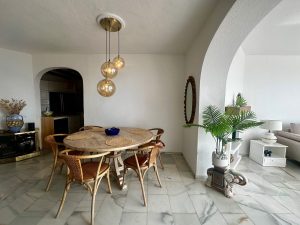 The bright living room opens onto a spacious terrace, perfect for relaxing or enjoying meals outdoors while admiring the horizon. The three bedrooms also feature sea views, providing a calm and luminous atmosphere.