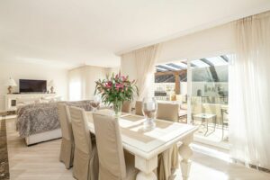 Fabulous 3-bed, 3-bath duplex penthouse located in the enviable and luxurious beachside area of Elviria (Marbella.) This is an incredible opportunity not to be missed. The main floor offers a spacious living area, a fully fitted kitchen, one en-suite bedroom, and an impressive wrap-around terrace. The upper floor features two further double en-suite bedrooms, both south-facing and filled with natural light. Enjoy 114 m² of sunny, south-facing terraces, perfect for outdoor dining and relaxation. The property is sold fully furnished, includes a garage space, and is just a short walk to some of Marbella’s best beaches, beach clubs, bars, and restaurants. Located in a highly sought-after development, only 15 minutes’ drive to Marbella Old Town and 25 minutes to Málaga Airport.