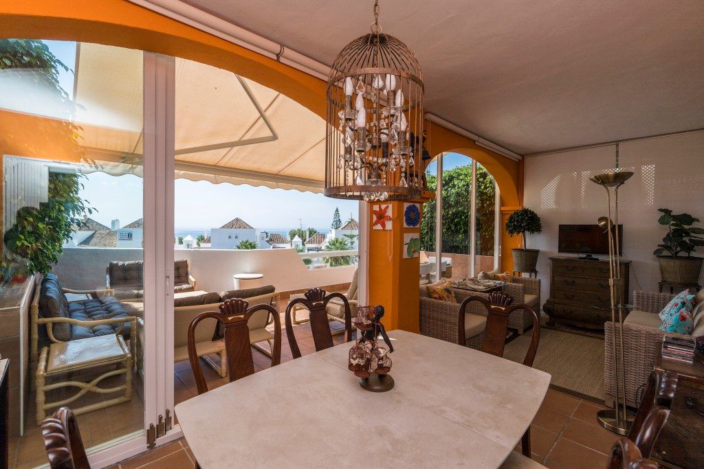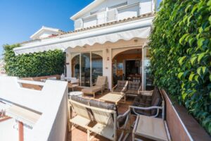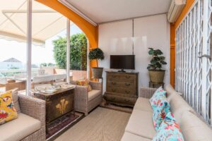 Impressive penthouse duplex in Marbella Playa Elviria, offering three bedrooms, three bathrooms, guest toilet, large and sunny living room, fully equipped new modern kitchen, big partly glazed terrace with stunning sea views and southeast orientation. Including garage, storage, new air con hot and cold, marble floor. Nice community with gardens and pool and only minutes away from amenities and from the sandy beach.