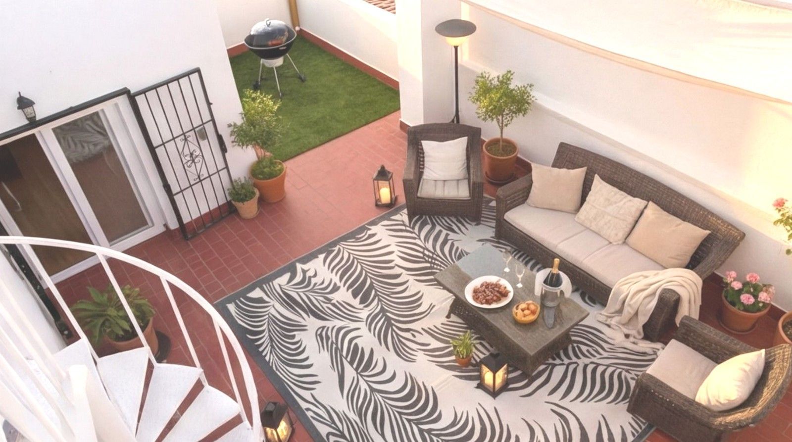 Head upstairs and things get even more relaxed. There’s another private terrace, set up as the ultimate chill zone with a BBQ area, making it easy to entertain or steal a quiet moment with views of lush greenery and the Mediterranean breeze.