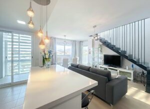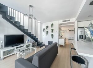 This stylish duplex penthouse is an exceptional find in the heart of Estepona, offering a modern living experience just steps from everything the town has to offer. Situated in a prime residential area, the property enjoys the convenience of being close to shops, schools, cafés, playgrounds, public transport, and within a short walk of the beach, marina, and several golf courses.
