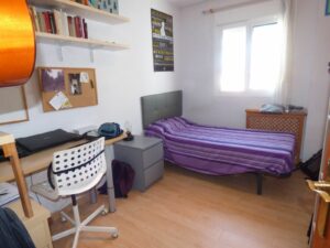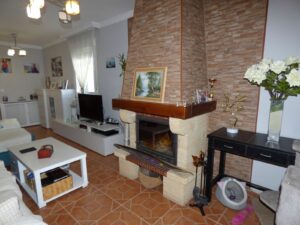On the main floor you’ll find a spacious kitchen with room for a dining table, a guest WC, a cozy living room, an enclosed terrace currently used as an office/fourth bedroom, and access to the large open terrace.