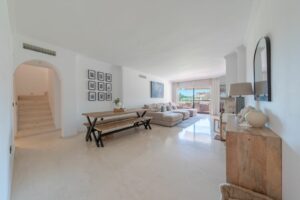 Welcome to this stunning duplex penthouse in the exclusive, gated community of La Cartuja del Golf – a true hidden gem between Marbella and Estepona.