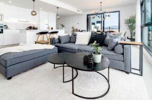Inside, you’ll find three beautifully appointed bedrooms – including a king-size and two queen-size beds – plus a sofa bed for extra guests. Two modern bathrooms with walk-in showers offer both comfort and privacy. The open-plan kitchen is fully fitted with premium appliances, ideal for both everyday living and entertaining.