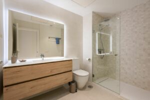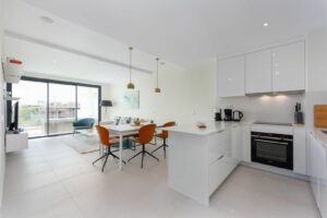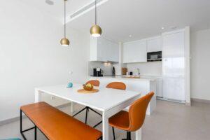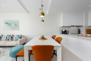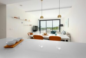 Featuring 3 spacious bedrooms and 2 modern bathrooms, it boasts an open-plan kitchen and two large terraces, perfect for enjoying the breathtaking views of the golf course, sea, and mountains. The master bedroom includes an en-suite bathroom and private terrace access.