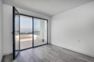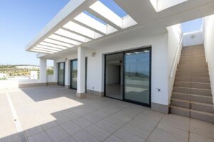 The entrance hall leads to the open plan fully equipped kitchen and a sunny living/dining room with large floor to ceiling sliding doors flowing effortlessly onto the very generously sized south-facing terrace and amazing roof top terrace, with breath-taking, panoramic views over the Mediterranean and African coast line.