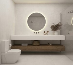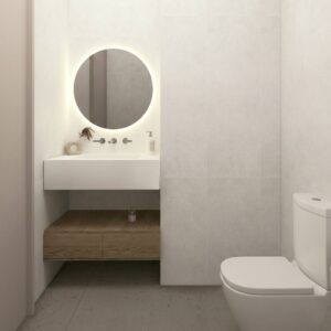 – Porcelain stoneware flooring in living areas and bathrooms