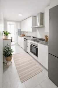 The kitchen is separate and highly practical, thoughtfully designed for everyday functionality while maintaining a clean and organized living environment. Its layout allows for efficient use of space while remaining conveniently close to the main living area.