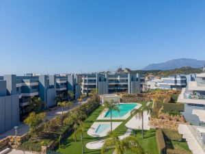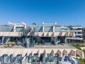 Penthouse El Oasis is a contemporary three-bedroom penthouse located on the New Golden Mile, in the Selwo area. Positioned within a modern residential complex, this property combines clean architectural lines with functional indoor and outdoor living spaces, designed for comfort and privacy.