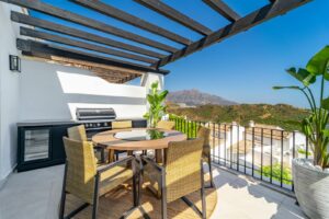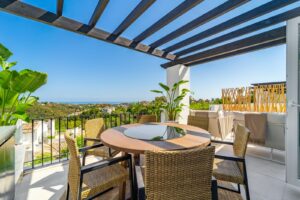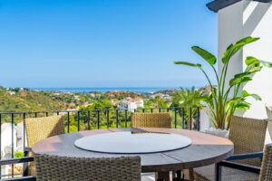 Commanding a privileged position overlooking the rolling landscape of La Quinta and the shimmering Mediterranean beyond, this brand-new, south-facing penthouse is a home defined by its outlook. Here, uninterrupted panoramic sea views form the heart of the living experience, stretching endlessly across the horizon and flooding the interiors with light from sunrise to sunset. The orientation ensures sunshine throughout the day, while the elevated vantage point captures both the dramatic natural scenery of La Quinta and the serene expanse of the sea. From the sitting room and designer kitchen to the master suite, generous terrace and even the bathroom, the panorama is ever-present — a mesmerising backdrop that shifts in colour and tone with the passing hours.