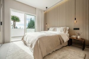The penthouse offers three beautifully appointed bedrooms and three elegant bathrooms. The master suite provides a private retreat with direct terrace access and stunning sea views. Every detail has been considered, from bespoke wardrobes to ambient lighting, ensuring both comfort and style.