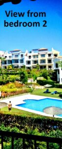 Main bedroom opens out onto the lower terrace looking over the golf course while the other 2 rooms open with balconies. open to the phase 2 swimming pool.