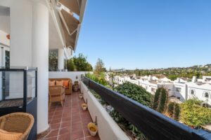 We are delighted to present this bright and elegant 3-bedroom, 2-bathroom duplex penthouse, which includes 2 parking spaces and a storage room, set within one of the most peaceful and sought-after residential complexes in Nueva Andalucía.