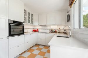 On the main floor, the property features a spacious living and dining area with access to a sunny terrace boasting panoramic views over the Golf Valley and southwest orientation, perfect for enjoying the sunsets. On this level you will also find a bedroom, a full bathroom, and a beautiful, recently renovated and fully equipped kitchen, which opens onto a charming terrace—an ideal spot for breakfast outdoors overlooking the gardens and swimming pool of the community.