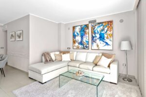 The apartment is built over two levels and features ample terraces on both floors, perfect for sunbathing, relaxing afternoons and beautiful sunsets. The beautiful home is tastefully furnished and decorated, comes fully furnished and the kitchen fully fitted.