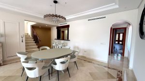 Upstairs, the lavish master suite awaits, complete with a French-style bathroom, walk-in dressing room, and access to two impressive private terraces with barbecue and solarium — perfect for relaxing or entertaining in style.
