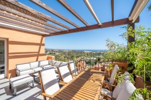 Nestled in the prestigious Les Belvederes community of Nueva Andalucia, Marbella, this exquisite luxury penthouse offers an unparalleled living experience. Boasting a total built area of 190m², including a spacious interior of 161m² and a 60m² terrace, this property is designed to provide both comfort and sophistication. Perfectly situated mountainside, it offers breathtaking panoramic views of the sea and surrounding landscapes, making it a truly unique residence.