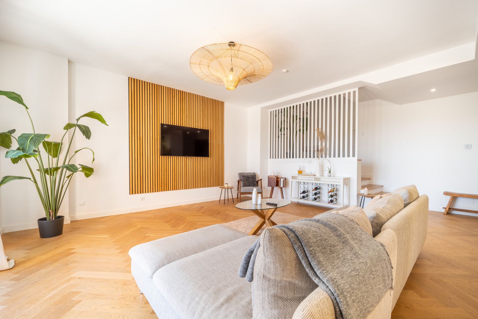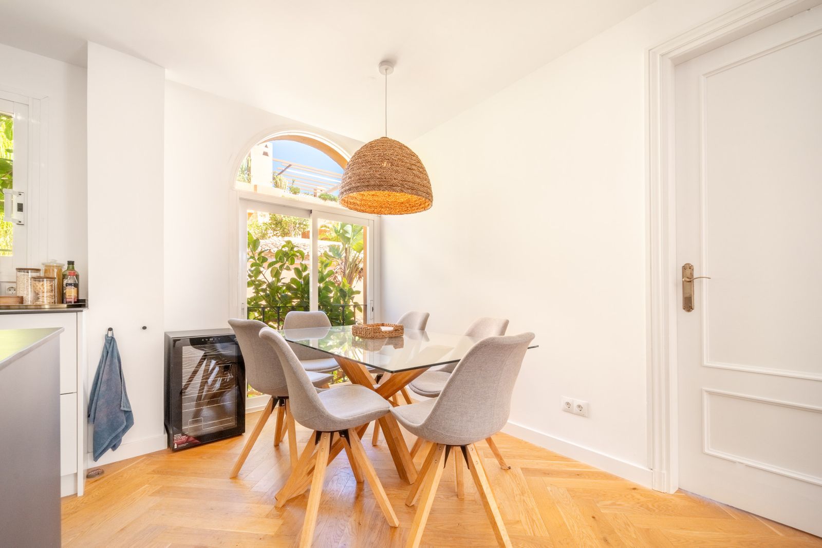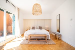 The penthouse features three generously sized bedrooms and two modern bathrooms, all recently renovated to reflect contemporary elegance. The interiors are adorned with wooden floors and glass doors, enhancing the sense of space and light throughout. Fully furnished to the highest standards, the property also offers the option for custom furniture to suit individual preferences. A private terrace and both covered and uncovered outdoor spaces provide ample opportunities to enjoy the Mediterranean climate.