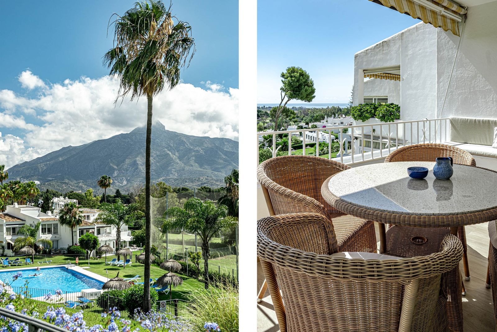 Discover this beautiful 3-bedroom penthouse in the exclusive Azahara development. Located on the first floor, as this development only has the ground floor and first floor, there are only 10 stairs to climb to reach this apartment in the heart of Nueva Andalucía. Recently renovated and ready to move into, this apartment is located in a peaceful setting, with a communal garden and pool. It offers panoramic sea and mountain views, combining comfort and exclusivity.