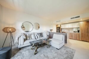 Aloha sits at the heart of Marbella’s famed Golf Valley, offering a blend of manicured fairways, mountain vistas, and Mediterranean charm. The prestigious Aloha Golf Club, designed by Javier Arana, has hosted top-tier tournaments and features tree-lined fairways, lakes, and streams — a true golfer’s paradise. Aloha’s charming “pueblo” center adds an Andalusian village touch—complete with delightful cafés, restaurants, a supermarket, and delightful communal gardens.