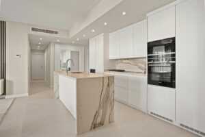 Spanning a single level, this penthouse features expansive living areas throughout, including a beautifully designed open-plan modern kitchen equipped with premium Siemens appliances. The luxurious living and dining area is complemented by three spacious bedrooms and three bathrooms. The master bedroom boasts a custom-built walk-in closet and a lavish en-suite bathroom with a double stone sink and large walk-in shower.