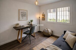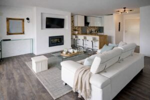 The kitchen is modern and fully equipped, featuring clean lines and warm textures that harmonize with the home’s Scandinavian-inspired finishes. Each bedroom is designed to feel calm and restful, with a soft neutral palette and elevated styling elements. The bathrooms offer a fresh, boutique-hotel feel with quality fittings and a crisp white aesthetic.
