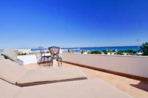 This is a very unique property right on the one of the best beaches in Marbella. This property is really unlike almost an other property in the Cabopino Port complex. The property offers the private and open upper terraces of a penthouse with a more sociable lower terrace that has direct access to a communal pool that is normally only enjoyed by a garden apartment. Really the best of both worlds. This property would suit a large family or social couple looking for plenty of space with absolutely everything on ones doorstep. The pool, the beach and the famous port with all its restaurants are all just two minutes away. Do you want to dance, eat in great restaurants, go jogging or enjoy water sports here it is really all just two minutes from the property. The property would also provide excellent rental potential and is ready to move into. This is really a must see property with easy viewing as we have keys.