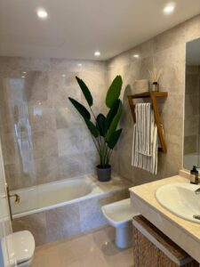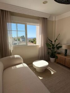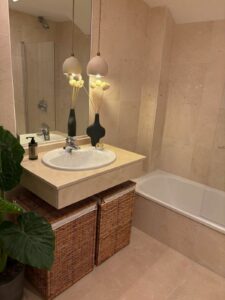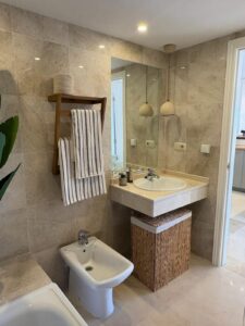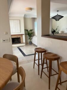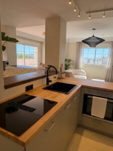 The penthouse features three spacious bedrooms, two bathrooms, and a large living room with a fireplace. The open-plan kitchen and dining area create a welcoming atmosphere, and the three terraces provide ample outdoor space to enjoy the Mediterranean climate. The property includes two parking spaces in the underground garage, ensuring convenience and security. The location is unbeatable, within walking distance of Marbella's best sandy beaches, as well as numerous restaurants, bars, and shops. The Río Real Golf Marbella course is just 500 meters away, and the nearest restaurant is also within easy walking distance.