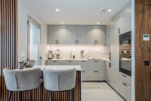 The living spaces are designed for modern living, featuring a sleek open-plan kitchen that flows seamlessly into the dining area and bright living room—ideal for both everyday living and entertaining.