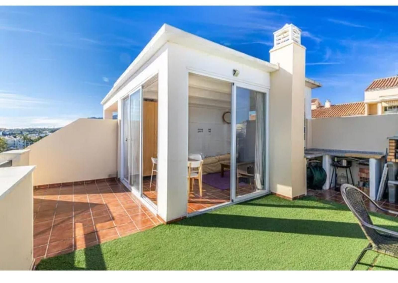 Discover this stunning 3-bedroom, 2-bathroom penthouse duplex located in the sought-after Selwo area of Estepona. Boasting a spacious 30 m² terrace with elegant glass curtains and a 60 m² solarium featuring a built-in charcoal barbecue, this home is designed for year-round outdoor living.