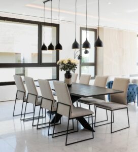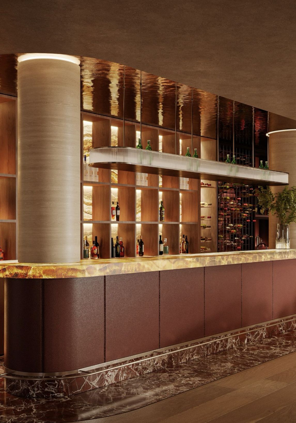 The interiors exude refined elegance, with Fendi Casa contributing to both the kitchen and custom wardrobes. The kitchen is equipped with premium Gaggenau appliances and seamlessly flows into open-plan living areas that connect directly to expansive outdoor spaces.