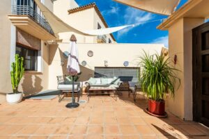 Located in the prestigious residential complex El Casar, right in the heart of Benahavís village, this elegant three-bedroom, three-bathroom townhouse offers an exceptional blend of comfort, style, and Mediterranean living.