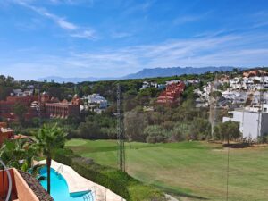 Town House for sale in Cabopino, Marbella with 3 bedrooms, 2 bathrooms, 2 en suite bathrooms, 1 toilet and with orientation south, with communal swimming pool, private garage and private garden. Regarding property dimensions, it has 304.22 m² built and 135.56 m² plot. Has the following facilities front line golf, transport near, air conditioning, fully fitted kitchen, fireplace, marble floors, satellite tv, basement, alarm, solarium, security entrance, double glazing, video entrance, barbecue, telephone, guest toilet, private terrace, living room, sea view, golf view, smart home system, internet – wi-fi, covered terrace, electric blinds, fitted wardrobes, garden view, pool view, panoramic view, street view, close to sea / beach, close to golf, uncovered terrace, glass doors, optional furniture, excellent condition, recently renovated / refurbished, ceiling cooling system, saltwater swimming pool, close to shops, close to port, surveillance cameras and pets allowed.
