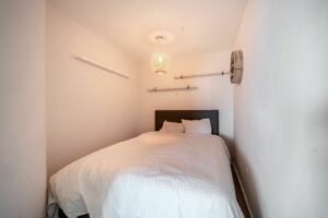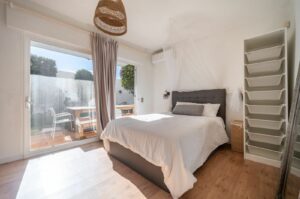 On the lower floor are the three bedrooms and two bathrooms, plus the extra shower room. In the main bedroom, behind the built-in wardrobes, there is a small additional room that can be used as a dressing or storage space.