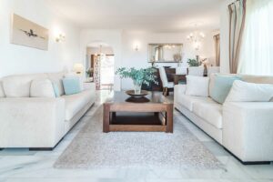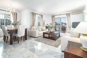 This is a detached villa in a small and quiet community of 9 independent houses. Located in the residential and green area of Jardines de Calahonda, bordering the Cabopino golf course.