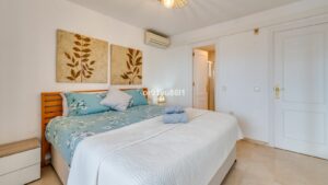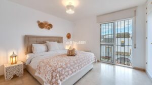 Townhouse Close to the Beach in Costabella Located within a gated, secure community in Costabella, just a short stroll from the beach, this three-bedroom, two-bathroom townhouse features a bright, spacious interior comprising a cosy living room with fireplace and an open-plan kitchen. Step out onto the private, shaded patio—an inviting space for al fresco dining or a relaxing evening with a glass of wine. The well-kept gardens and large communal swimming pool contribute to creating a serene and exclusive atmosphere.