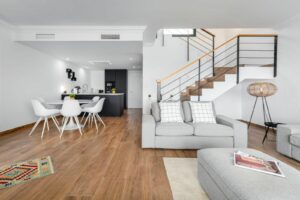 The house has 3 bedrooms and 3 bathrooms which is spread over three floors.
