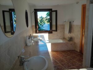 The house offers an ideal layout with three bedrooms and two full bathrooms, one of them en suite in the master bedroom.