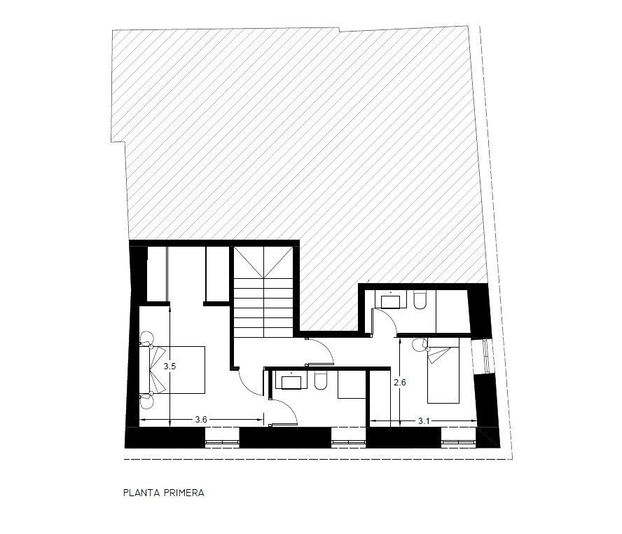 Ascending to the first floor, you'll find two bedrooms, each with built-in wardrobes and en-suite bathrooms. The second floor is dedicated to the master bedroom, complete with a dressing area, en-suite bathroom, and a private terrace offering romantic views over the village rooftops.