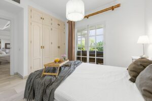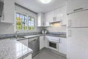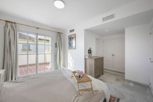 This stunning semi-detached villa is located in a traditional Andalusian development on the New Golden Mile. It is ideally located a short drive from Puerto Banús, with the beach just a short walk away.