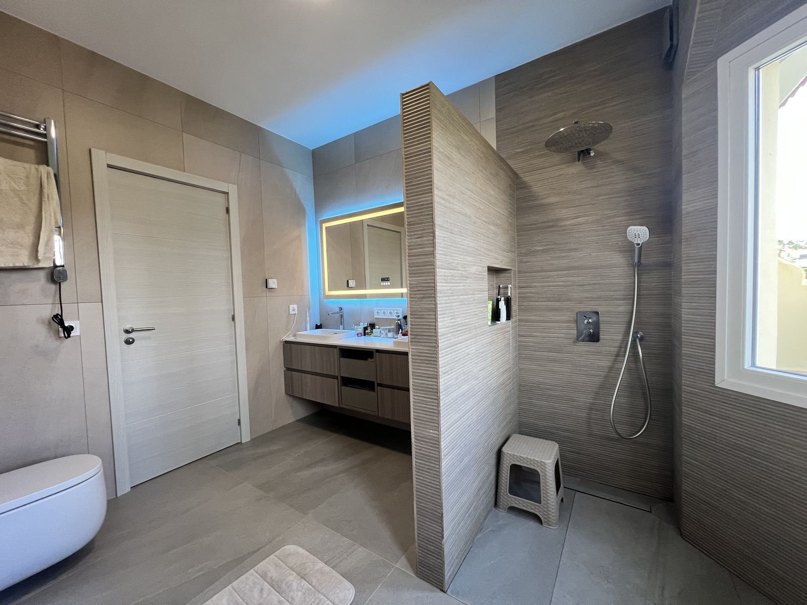 The home features 3 spacious bedrooms and 3 completely new bathrooms, along with new interior and exterior carpentry, providing a modern and elegant style throughout.