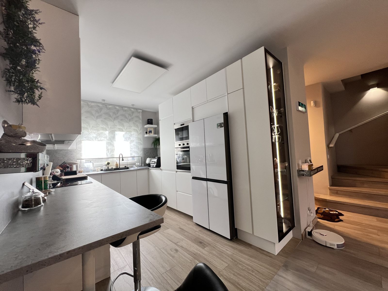 On the lower level, there is a large private garage plus a practical machinery area and storage room, adding functionality and extra storage space.